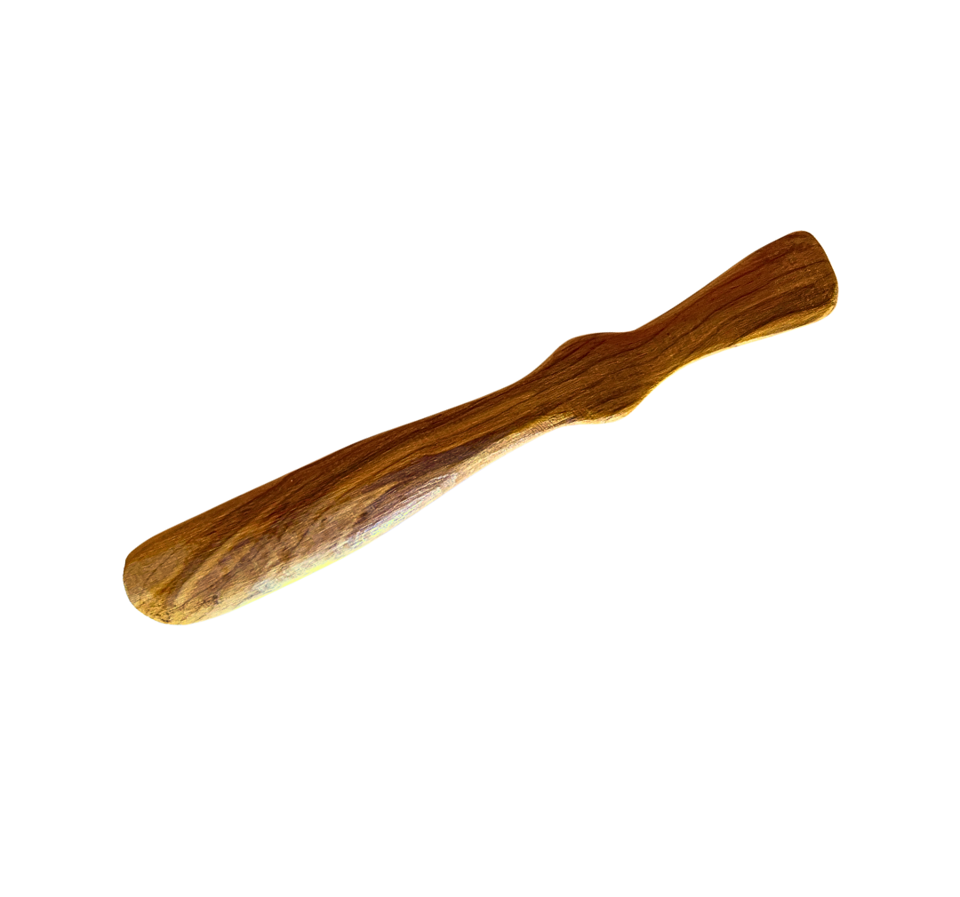Cuchillo mantequillero para picoteo realizado en madera de olivo.