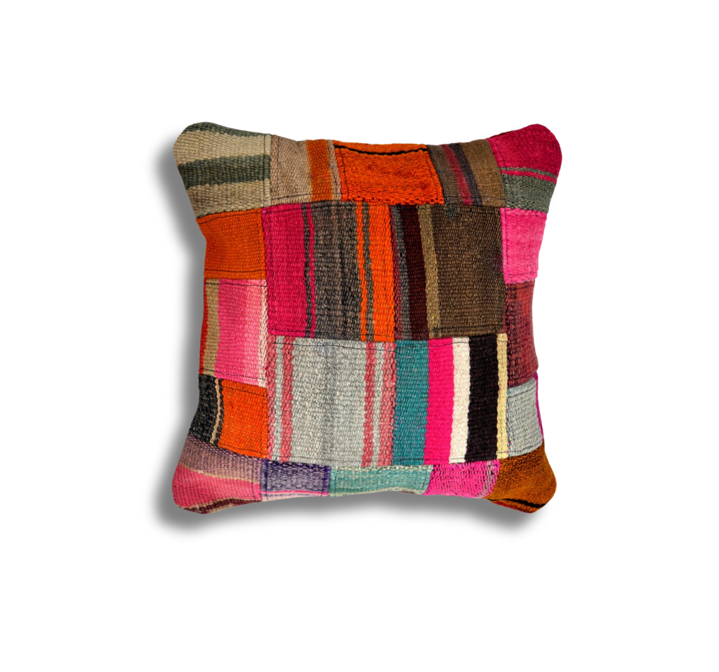 Funda de cojín de 45x45 cm. Realizado con técnica patchwork por artesanos del Altiplano.